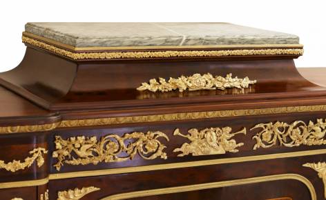 Material: Mahogany and Gilded bronze mercury, Marquetry, Marble