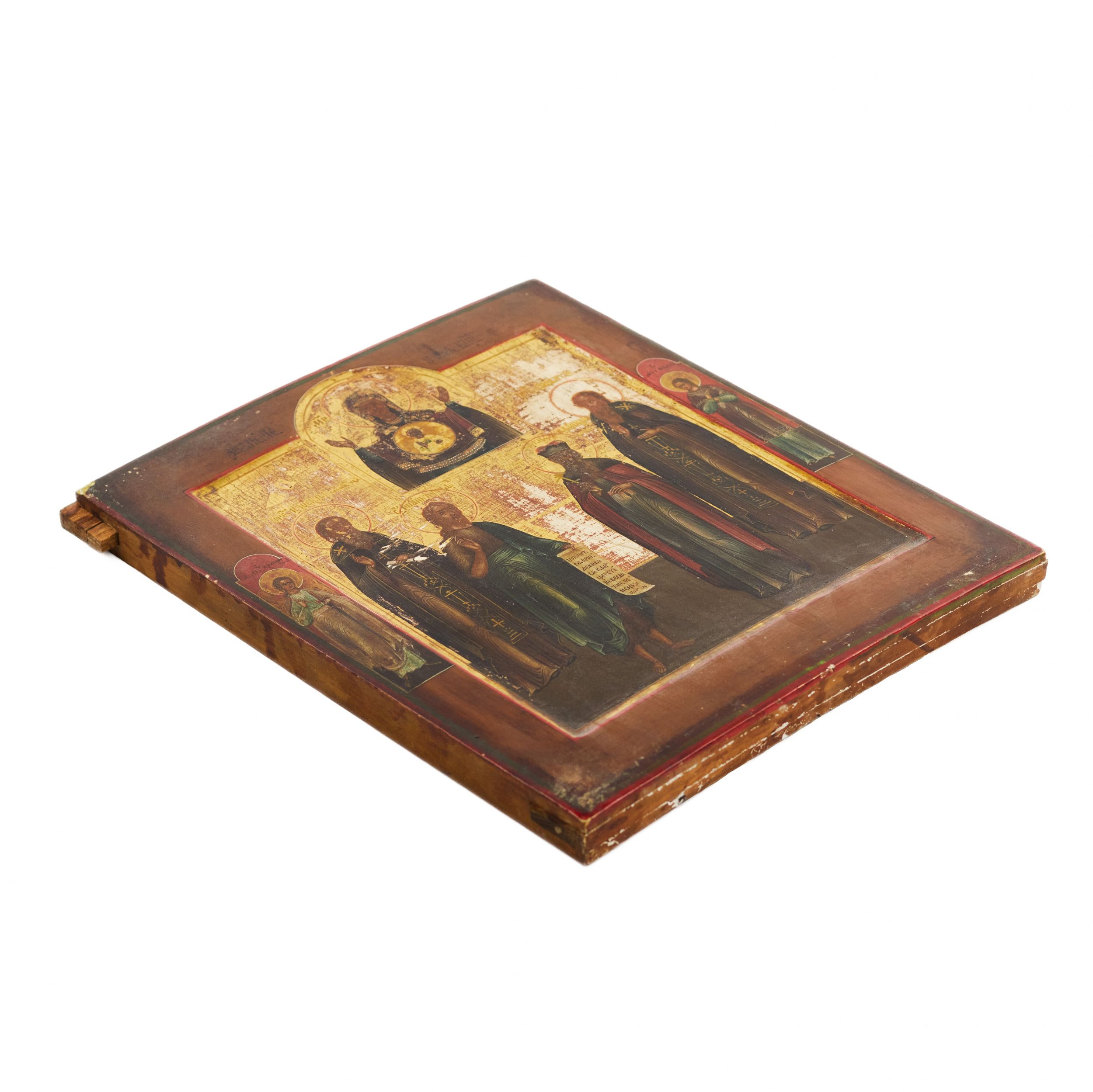 Состояние: Сохранность удовлетворительная. Наблюдаются утраты и истирания красочного слоя, потёртости золочения, следы естественного старения доски. Без видимых поздних поновлений.