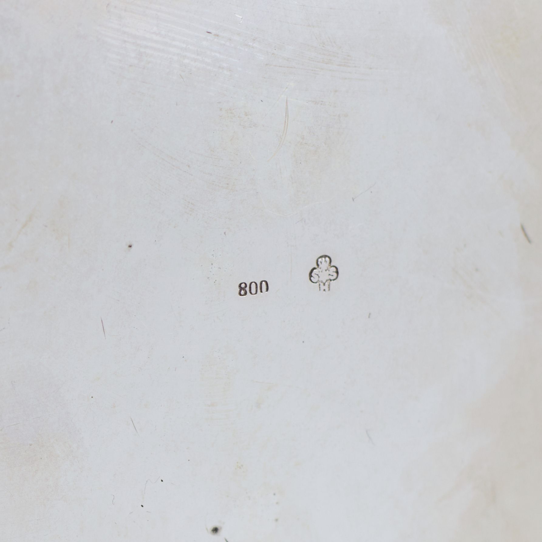 Marks: Silver standard mark “800”. Maker’s mark in a quatrefoil shield: an eagle above the letters “S - ★ - S”, positioned above the letter “H”. Such workshop marks are characteristic of silver produced by the workshops of Hanau (Germany) and were widely used during the second half of the nineteenth century on historicist objects intended for the international decorative silver market.