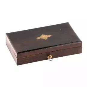 Кремневый пистолет в футляре. С гранёным стволом и гравированным орнаментом по металлу. Точеной рукоятью черного дерева. Клеймо мастера: LEG со звездой в овале. Франция. Первая половина 19 века.