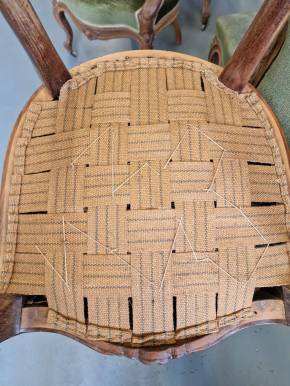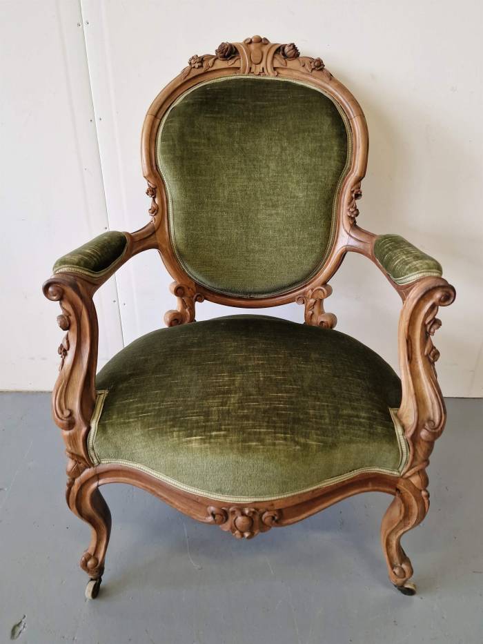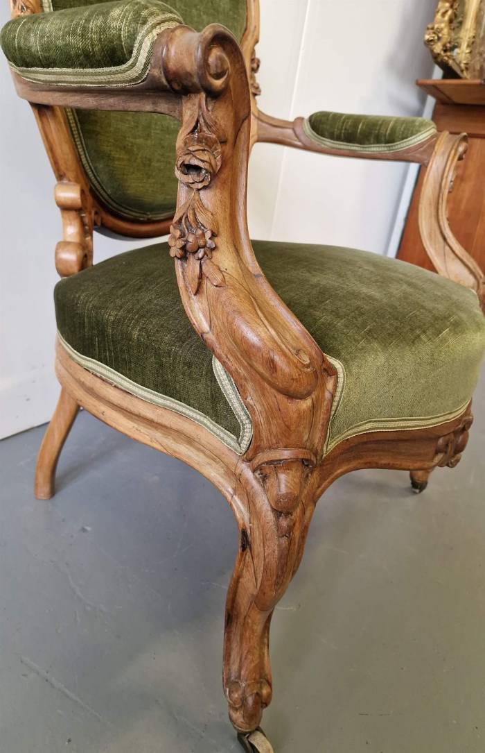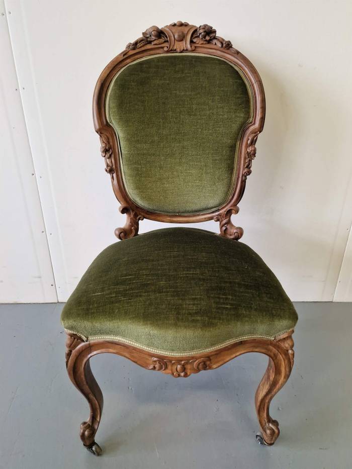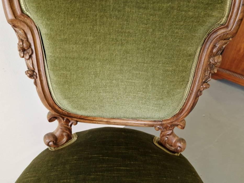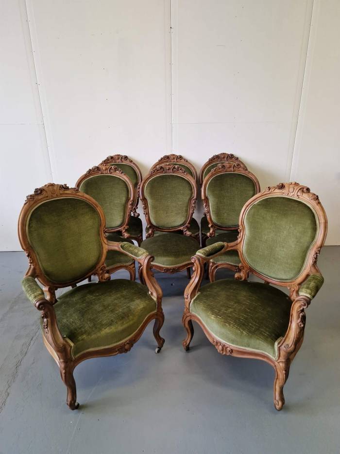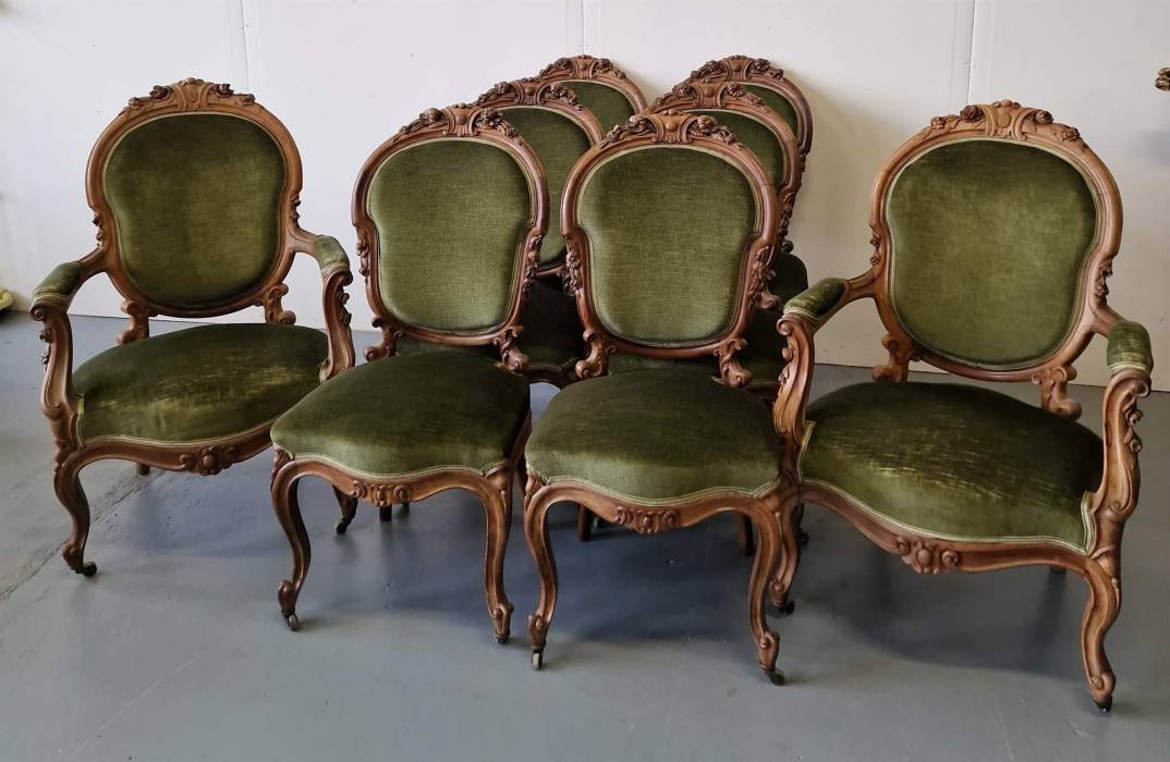 Set of 8 chairs with beautiful carvings.Made of walnut.France.1920s.Very good condition.Dimensions: Height 102; 48cm; width and depth 50x50cm