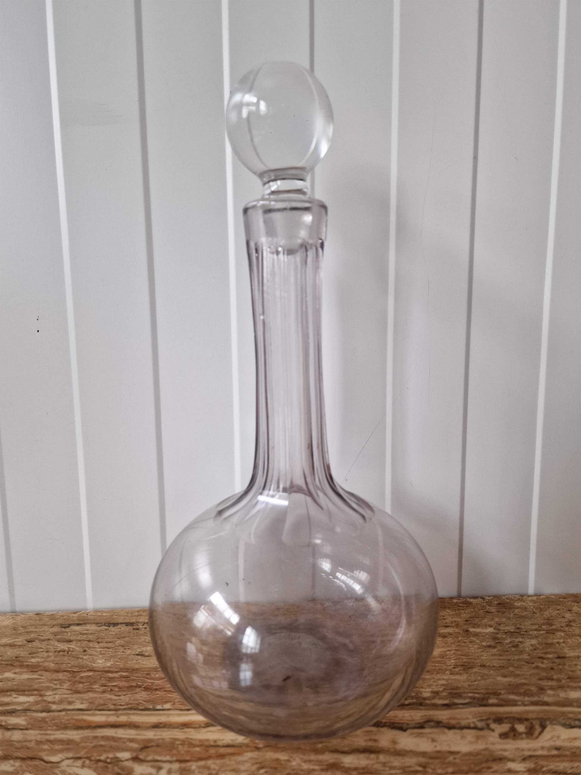 A beautiful glass decanter. In France.1960s.Height 29 cm; diameter 14 cm
