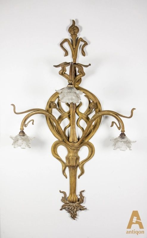 Уникальная пара салонных бронзовых настенных светильников, выполненных в виде виноградной лозы, листьев и цветочных бутонов.