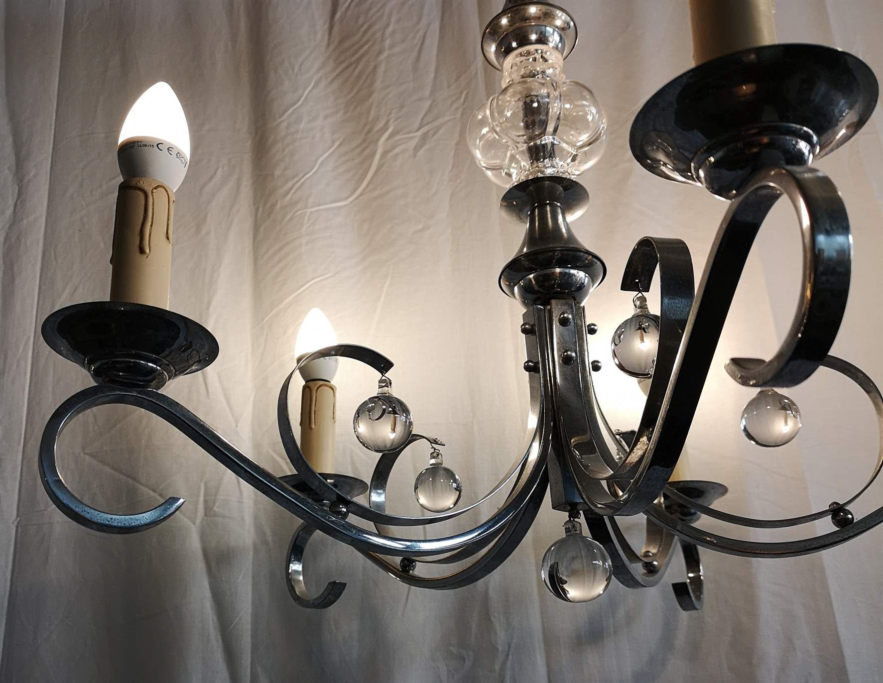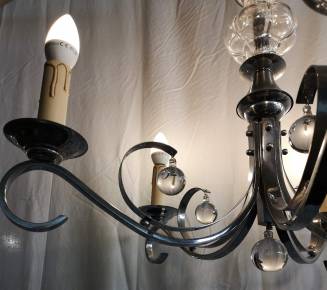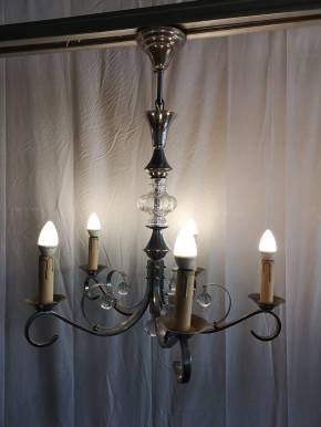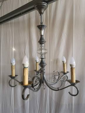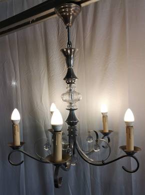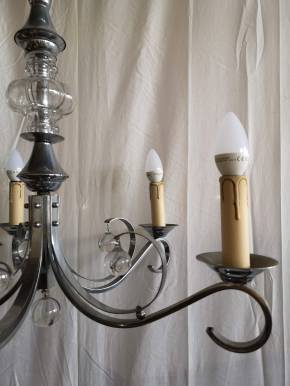 Art Deco style chandelier.Metal, glass.Belgium.1970s.Height 75cm; diameter 60cm.