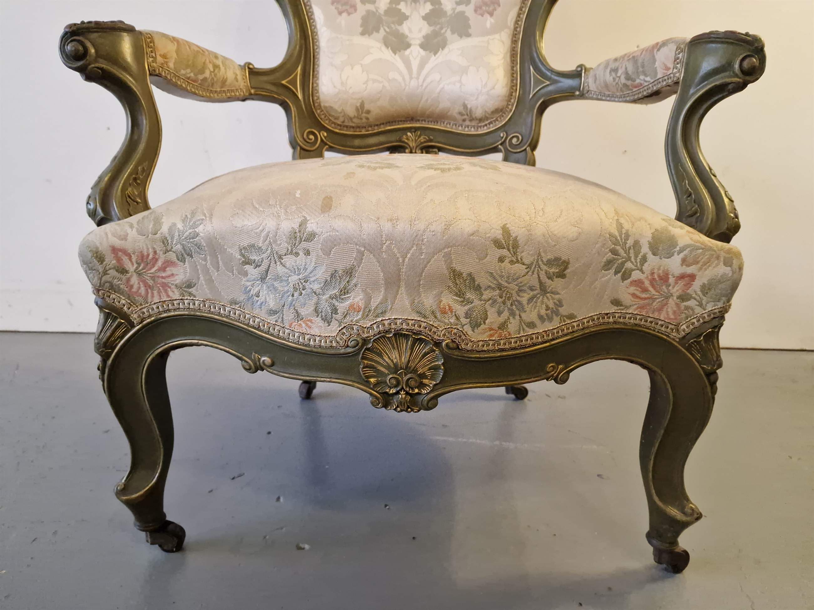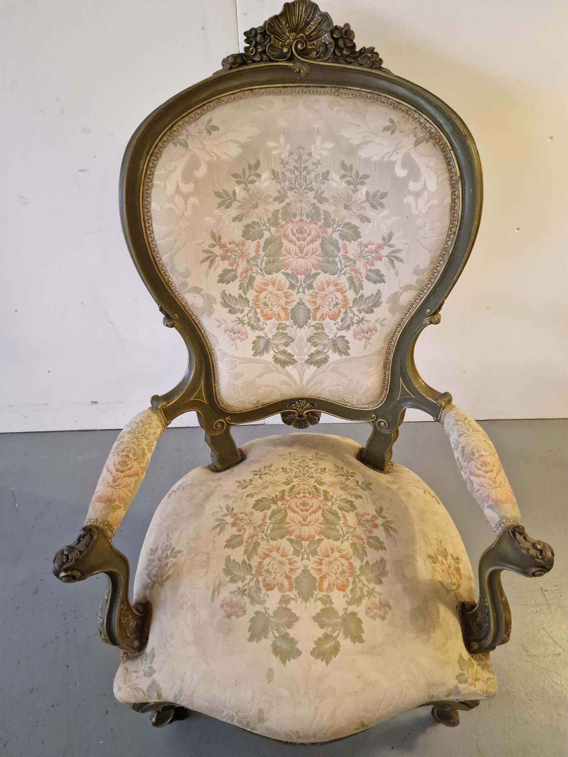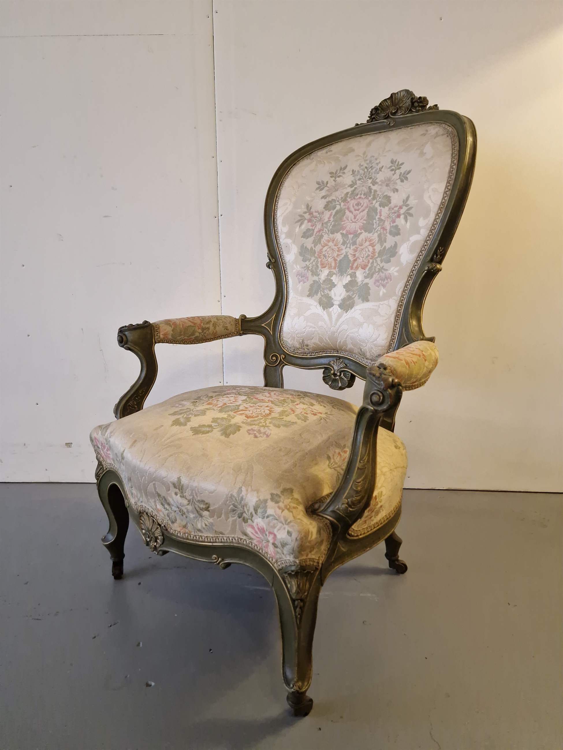 Beautiful chair with armrests.Wood, fabric with embroidery.France.1870s.Dimensions: height 114;42cm; width 76cm; depth 57cm
