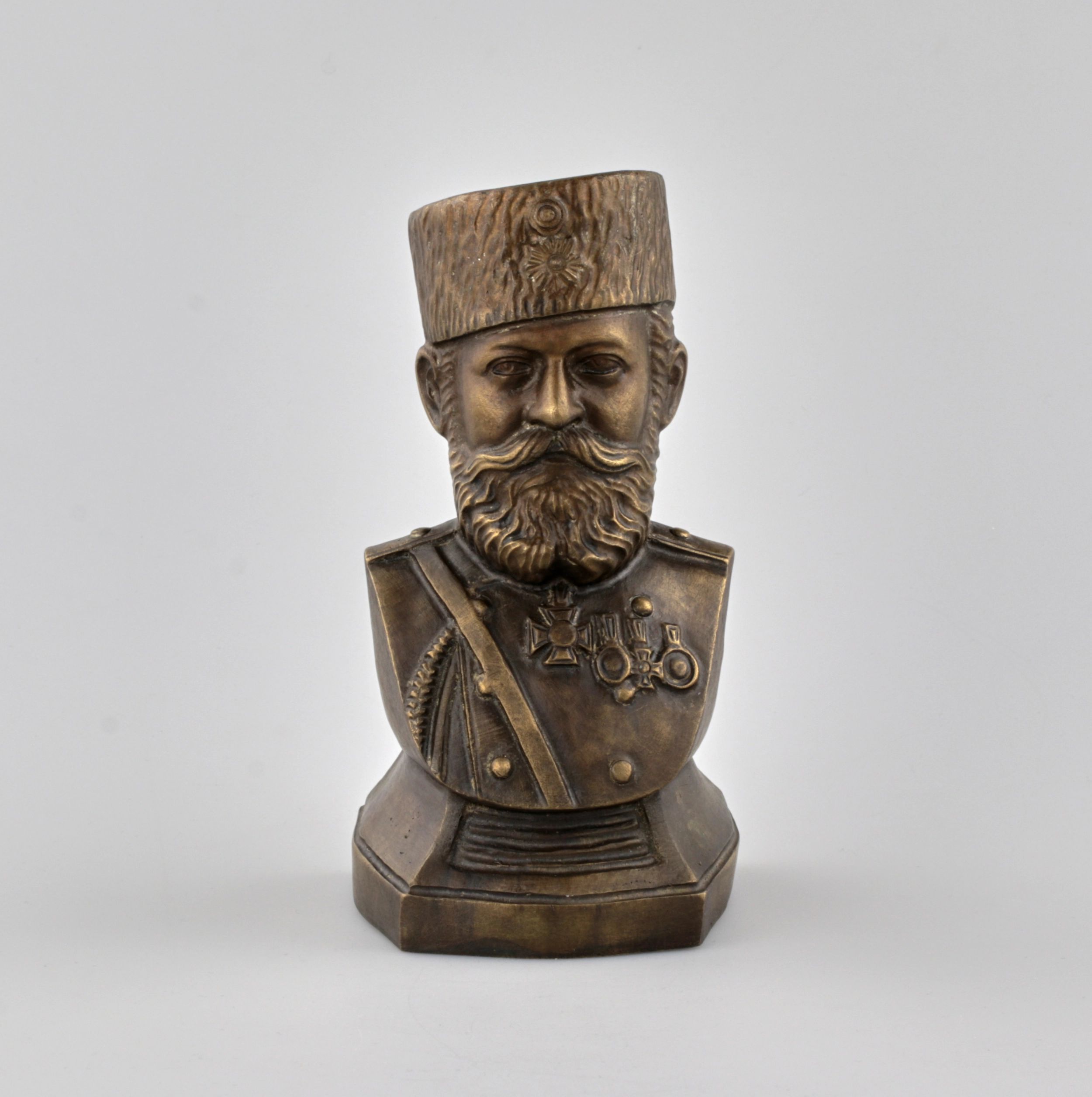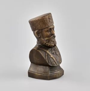 Бронзовый кабинетный Бюст Императора Александра III. Парадный портрет царя в излюбленном головном уборе.