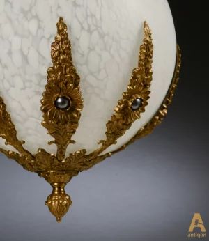 Люстра "Фонарь" выполненная из матового стекла, украшенная элементами художественной бронзы. Ø 30 см