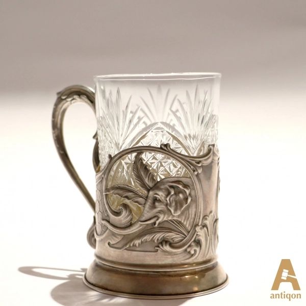 Серебряный подстаканник"Слоны",в комплекте с стаканом.