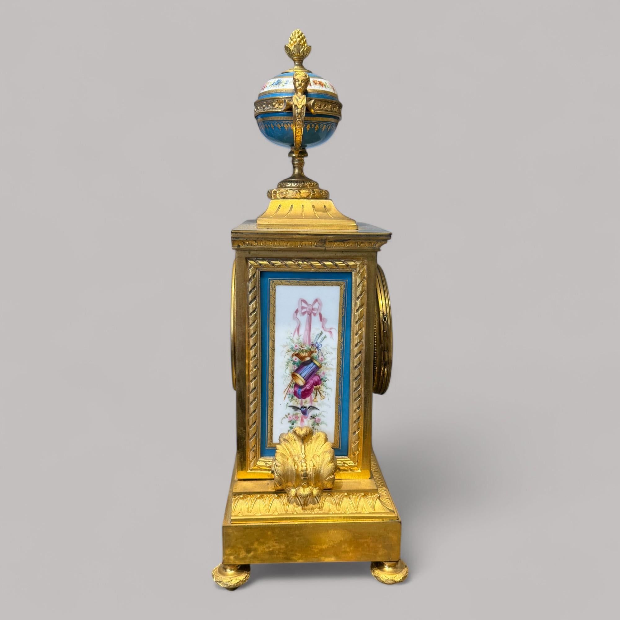 French Louis XVI Style Porcelain and Gilt Bronze Mantel Clock, 19th Century