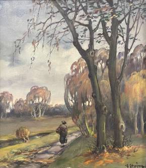 The paintings are distinguished by their tenderness, characterized by a graceful play of lines and a muted color palette. Author`s signature in the lower right corner. Size with frame: 54x48.5cm. Without frame: 40x35.5cm.