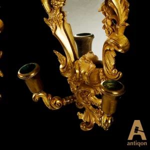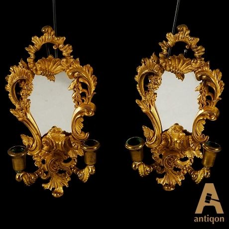 Пара настенных бра, богато украшенных элементами золоченной бронзы в стиле Рококо.