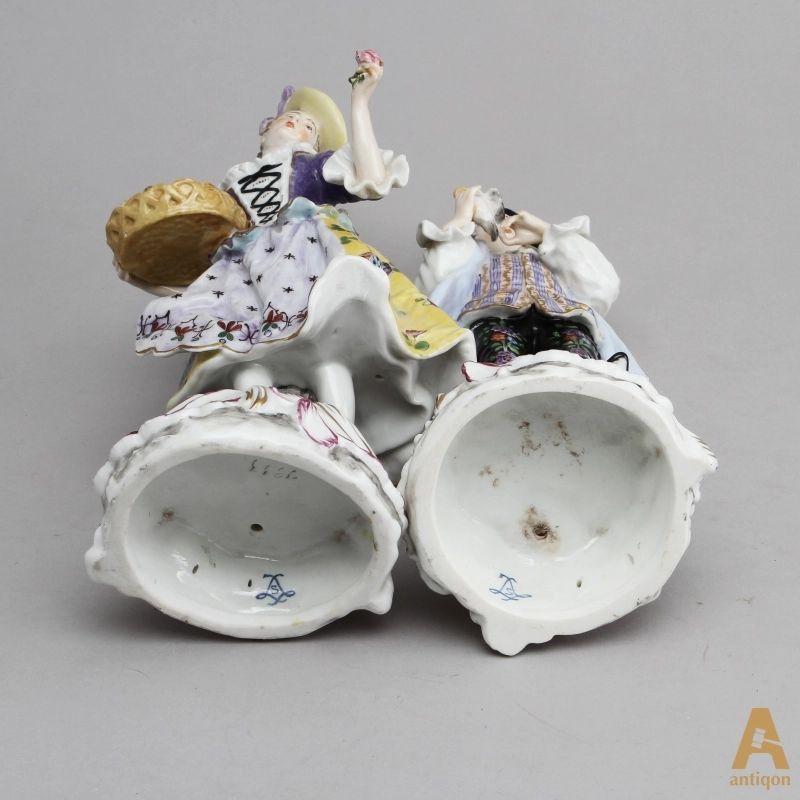 Пара фарфоровых фигур "Романтическая пара". Клеймо производителя "Sevres"