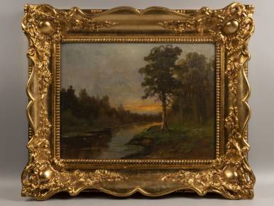 Размер по раме 46,5х57 см. Слева внизу подпись автора. Хорошее состояние.Розен Карл (Константин) Иванович (1864-1934) — живописец, пейзажист. Работал вместе со своим учителем Ю.Клевером (1882-1942). Создавал романтические пейзажи в стиле Ю.Клевера. Российский и латвийский художник Карл И. Розен родился 28 января 1864 года в Елгаве. По окончании местного реального училища уехал в Петербург, где продолжил обучение в Императорской Академии художеств у Ф.Бурова, И.Шишкина и Ю.Клевера по классу пейзажной живописи. Выставки с участием художника проходили в залах Академии в 1906, 1908, 1912 и 1914 годах. В 1918 К. Розен вернулся в Латвию, где продолжал активно работать. Здесь же, в Латвии, продолжилась давняя дружба Карла с Юлием Клевером. Персональная выставка Розена прошла в 1927 в рижском Клубе офицеров. После выставки работы художника продолжали успешно продаваться. Последние три года жизни Карл Розен работал очень мало, так как был неизлечимо болен. К.Розен был типичным представителем старой школы пейзажной живописи. Посмертная выставка К. Розена, устроенная вдовой художника, прошла в Елгаве в 1937. Летом 2003 в галерее Antonija (Рига) была выставка «Романтическая эпоха в живописи балтийских художников ХIХ - ХХ вв.», где было представлено несколько пейзажей Карла Розена. Творчество К. Розена обусловлено особенностями своего времени. Большая часть картин еще при жизни автора нашла своих ценителей в Дании, Швеции, Англии, Голландии, Франции, на родине - в Латвии, а также в России. Его лирические пейзажи, в которых воплотились пронзительное чувство родины и щемящая душу одухотворенность природы, украшали кабинеты иностранных резиденций и стены респектабельных домов.
