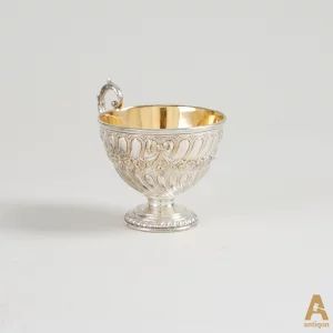 Серебряная чашечка. Клеймо C.G. Hallberg, S6 Стокгольм 1896 г., на арочных ногах, украшенных рельефным орнаментом и позолотой.
