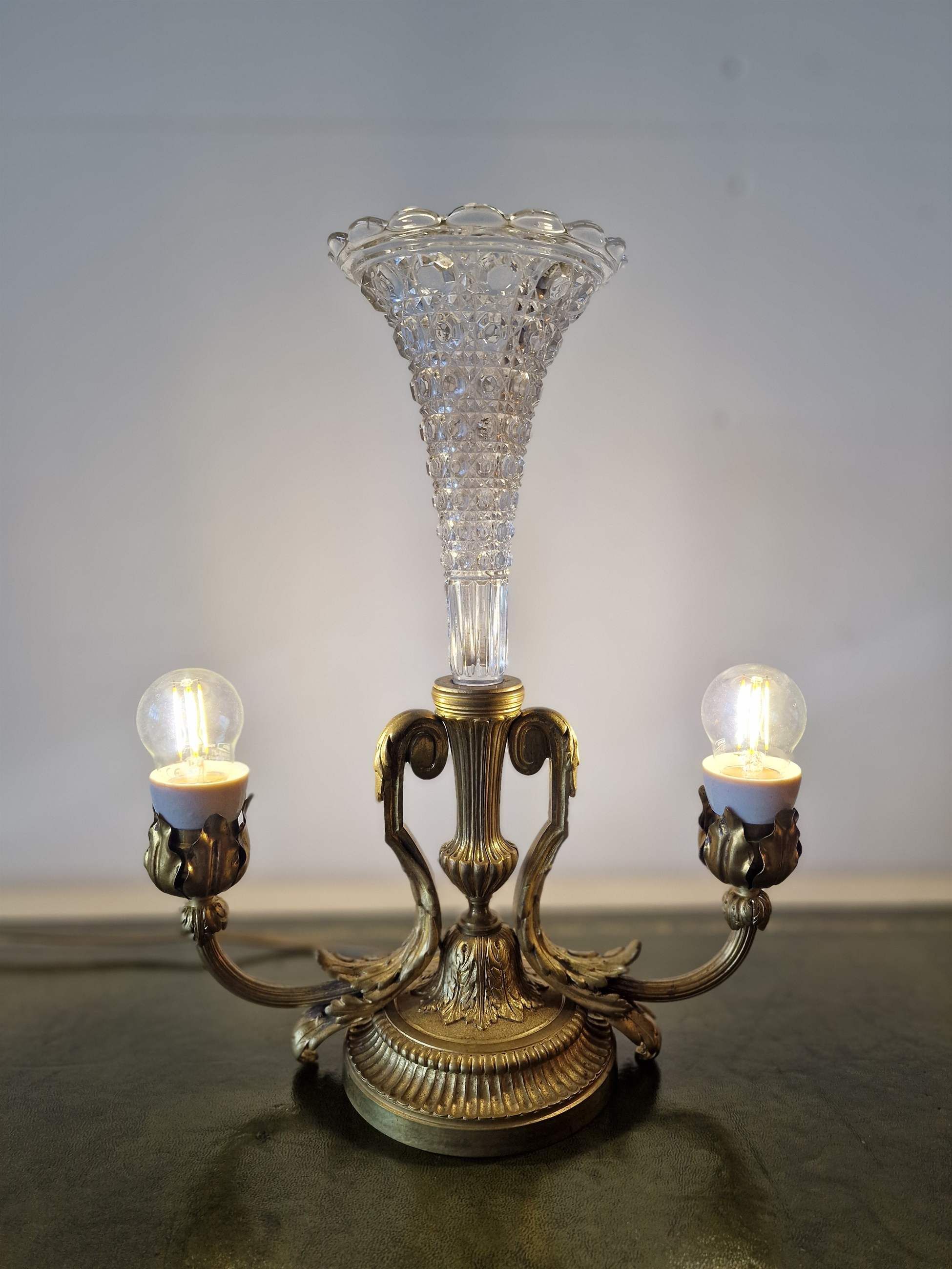 Table lamp - vase.Bronze, glass.Restored, new electrification.France.1930s.Dimensions: height 36cm; width 30cm; depth 13cm