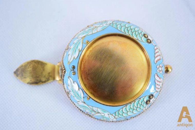 Серебряный Тестовэн (Tastevin),богато украшений эмалевым рисунком в виде русских узоров и изображением Райской птицы - Сирин,