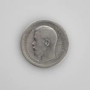 Au centre se trouve un portrait de profil de l`empereur Nicolas II. Sur la gauche se trouve l`inscription «B.M. NICHOLAS II EMPEROR , à droite - ET L`AUTOCHOR DE TOUTE LA RUSSIE . Le long du bord, il y a des elements en relief en forme de dents.