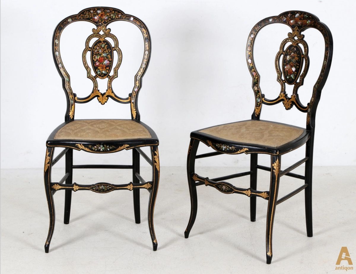 A pair of chairs decorated with gilding, mother-of-pearl and painting.