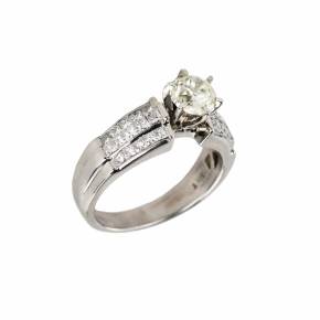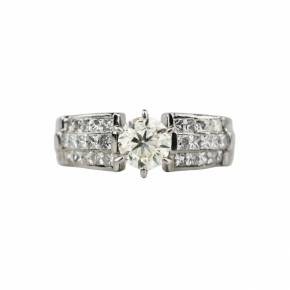 Bague en or blanc 18 carats avec diamants au design classique. Poids total : 6,32 grammes. Tour de doigt : 17.