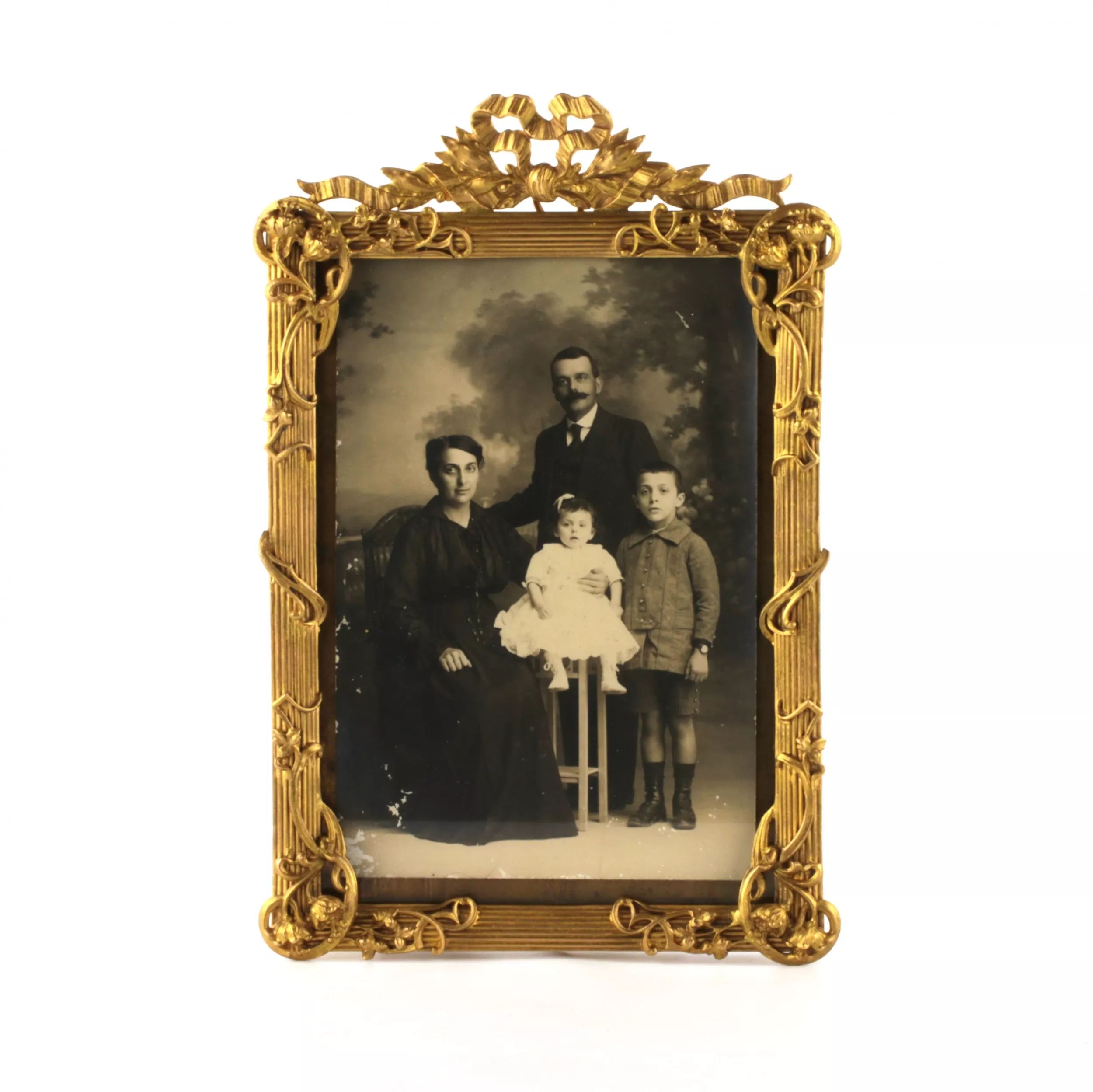 Cadre photographique en bronze avec des elements du debut de l`Art Nouveau. Une combinaison reussie de classicisme solennel et de plastiques de germination, organiques vivants du debut de l`ère moderne.