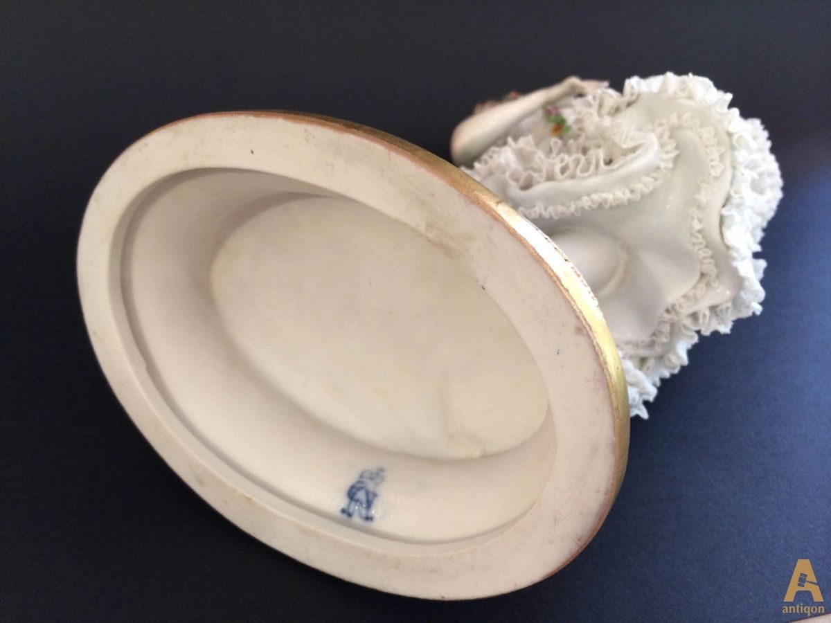 Porcelain figure of a dancing girl. The dress is made of porcelain lace. Sign of the manufacturer - Aelteste Volkstedter Porzellanfabrik AG