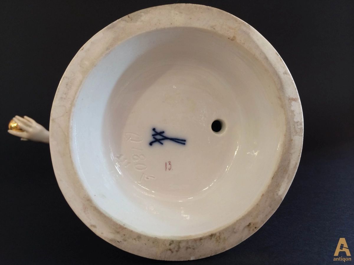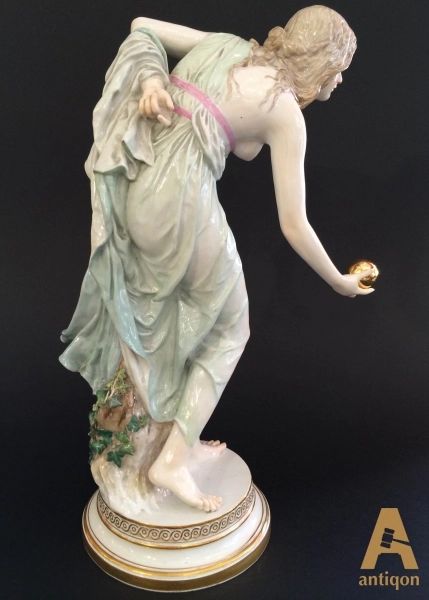 The girl plays with a ball. Stigma of manufacturer "Meissen", number  q180.