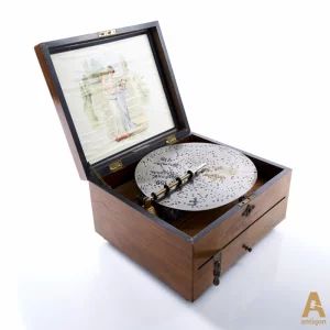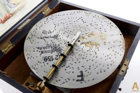 Music box, model "Fortuna", complete with ten discs, with popular Russian melodies.Plate with the inscription: Ю́лий Ге́нрихович Циммерма́н (Julius Genrikhovich Zimmerman) St. Petersburg Moscow Leipzig London. The mechanism is in excellent condition.