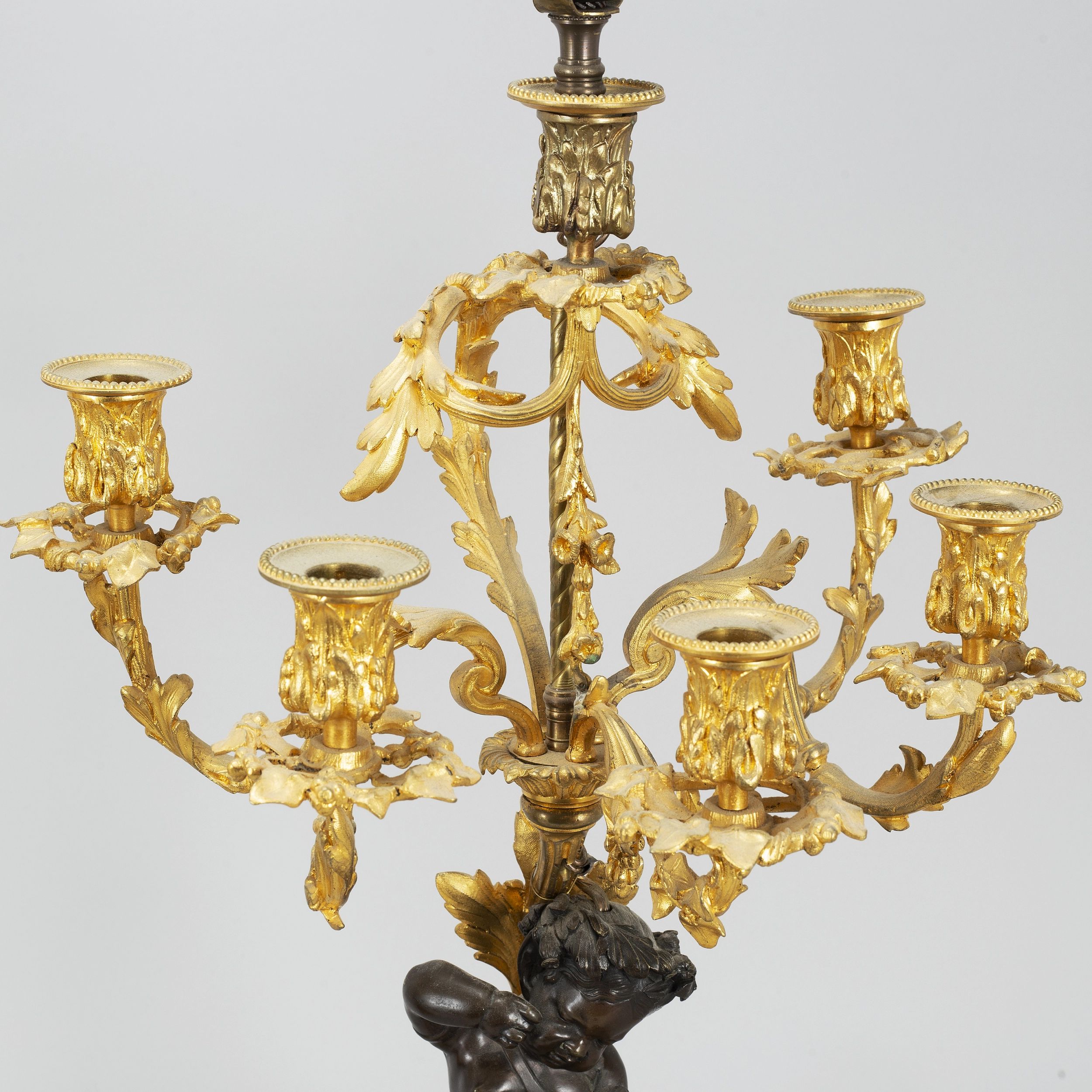 Paire de candelabres decores de figures des faunes jouant, realises dans le style rococo selon le modèle dHenri Picard.