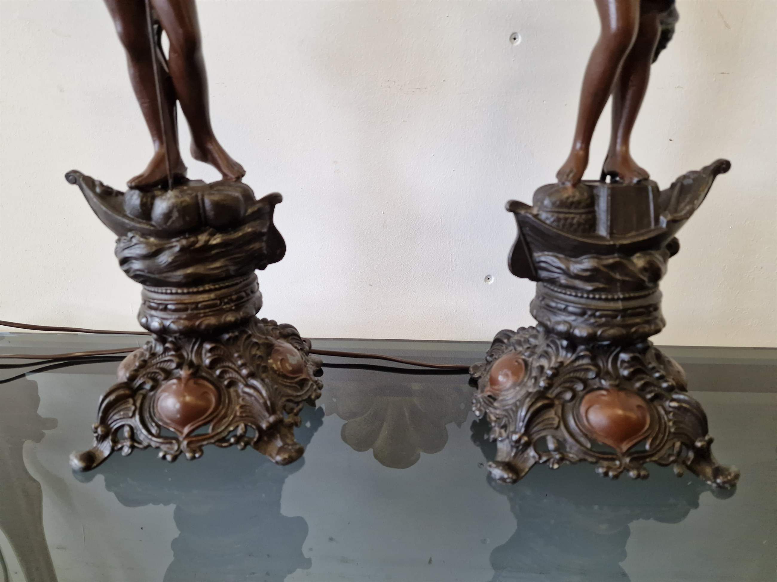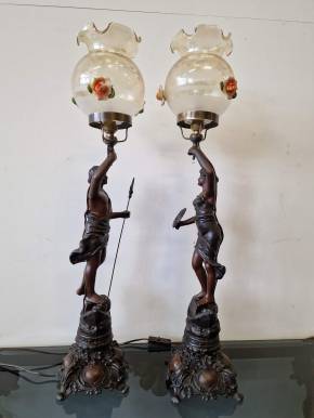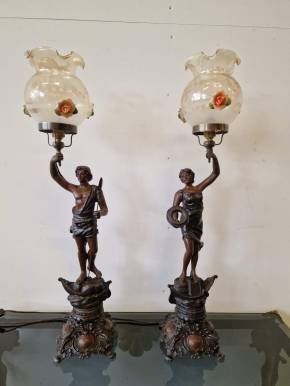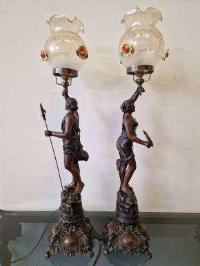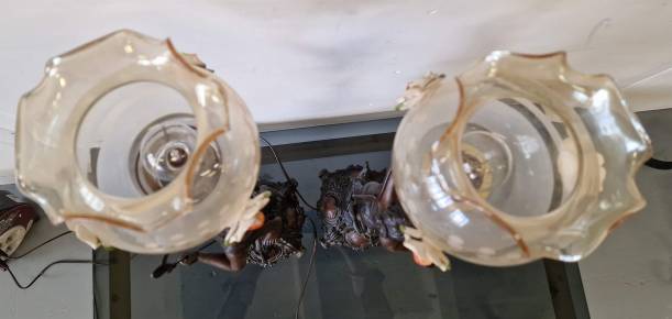 Paire de lampes de table. Métal, verre. Électrification récente. France. Années 1920. Dimensions : hauteur 70 cm ; 16 x 16 cm