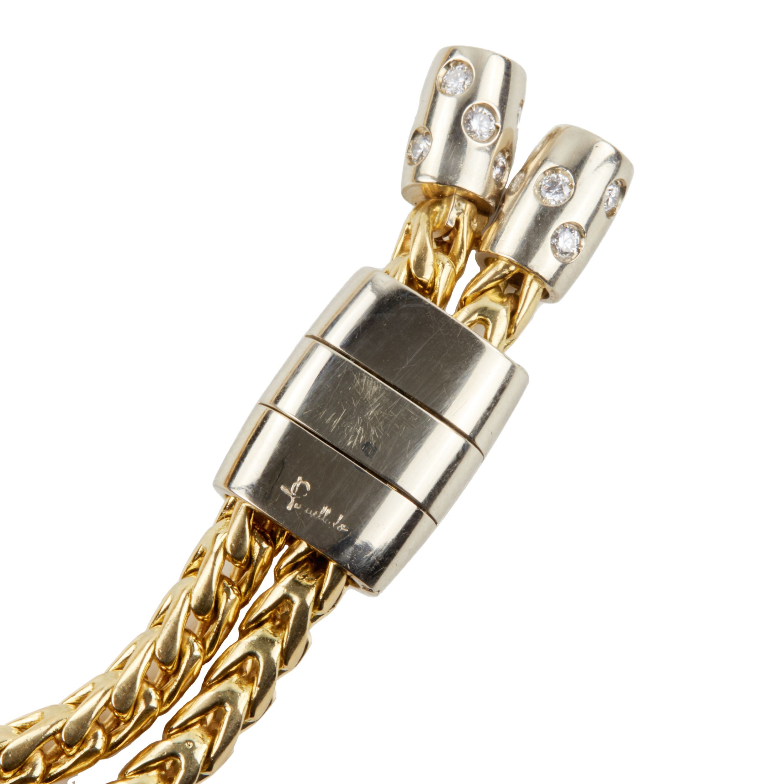 Vintage Pomellato Spiga. Pendentif-chaîne en or avec diamants. En or jaune et blanc, avec un fermoir et un lisere de lacets en diamants.