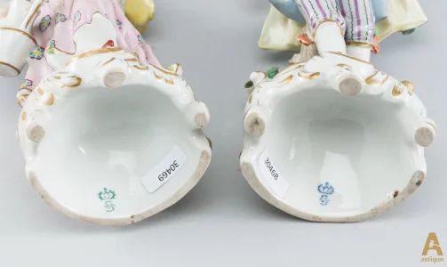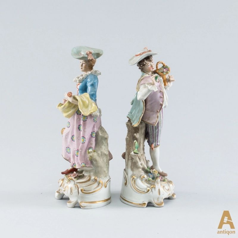 Фарфоровая группа "Романтическая пара"состоящая из двух фигурок , Девушка с лейкой и Юноша с корзинкой цветов. Клеймо производителя Sitzendorf.