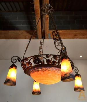 Историческая справка:Muller Frères семейная мануфактура (1904-1957), расположенная в Luneville , Франция. Мастера мануфактуры были известны были как производители стекольных изделий в стиле ар-нуво, такие как вазы и абажуры .