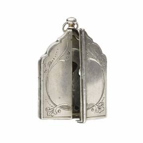 Дорожная серебренная иконка складень Гербовецкая икона Божией Матери с святыми. Россия