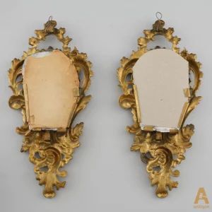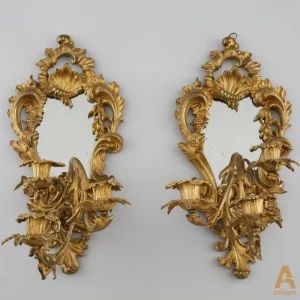 Пара настенных бра, богато украшенных элементами золоченной бронзы в стиле Рококо.