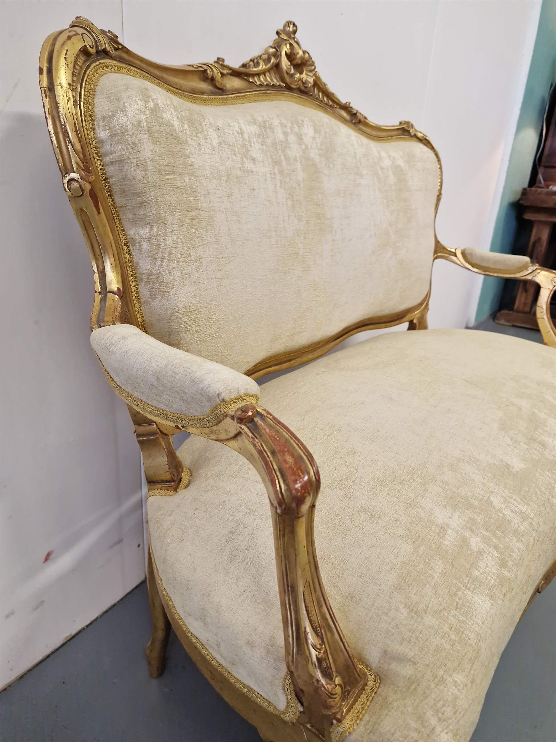Exquisite and beautiful sofa with 6 chairs.Walnut, gilding, restored, carved wood.Italy.1920s.Dimensions of the sofa: Height 103;46cm; length 129cm; depth 58cm