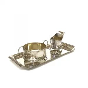 Miniatūrs sudraba komplekts, kas sastāv no paplātes, krēmkrāsas un cukura bļoda.Zimogi: K & EC, Tore Eldh, Zviedrija E9 1955Svars: 240 gr.