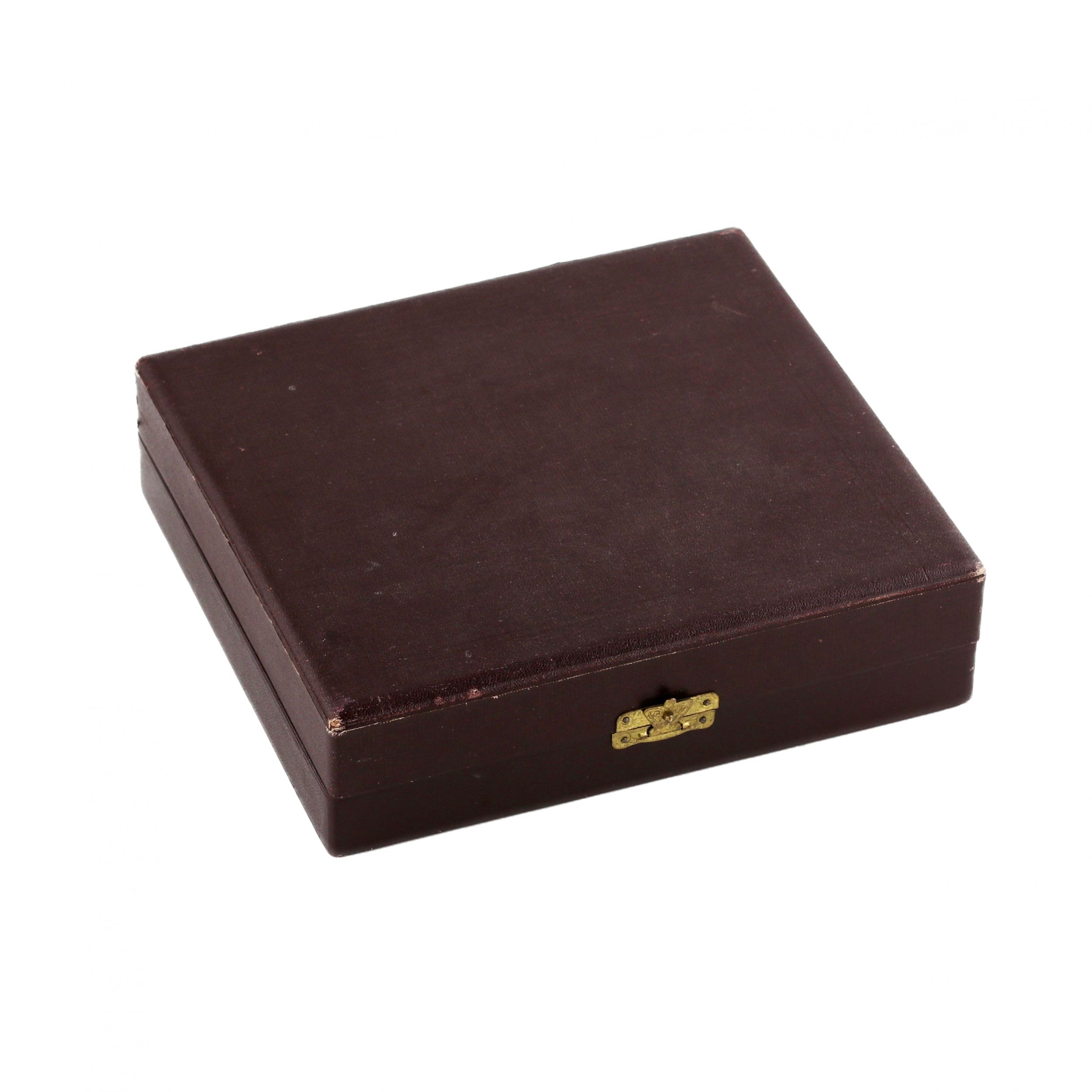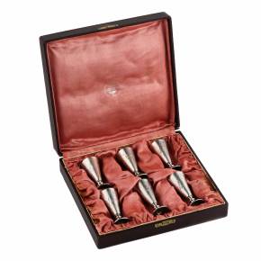 Sešu sudraba glāžu komplekts, savā futrālī. Rīgas juvelierizstrādājumu fabrika 1940.-50.gadi.