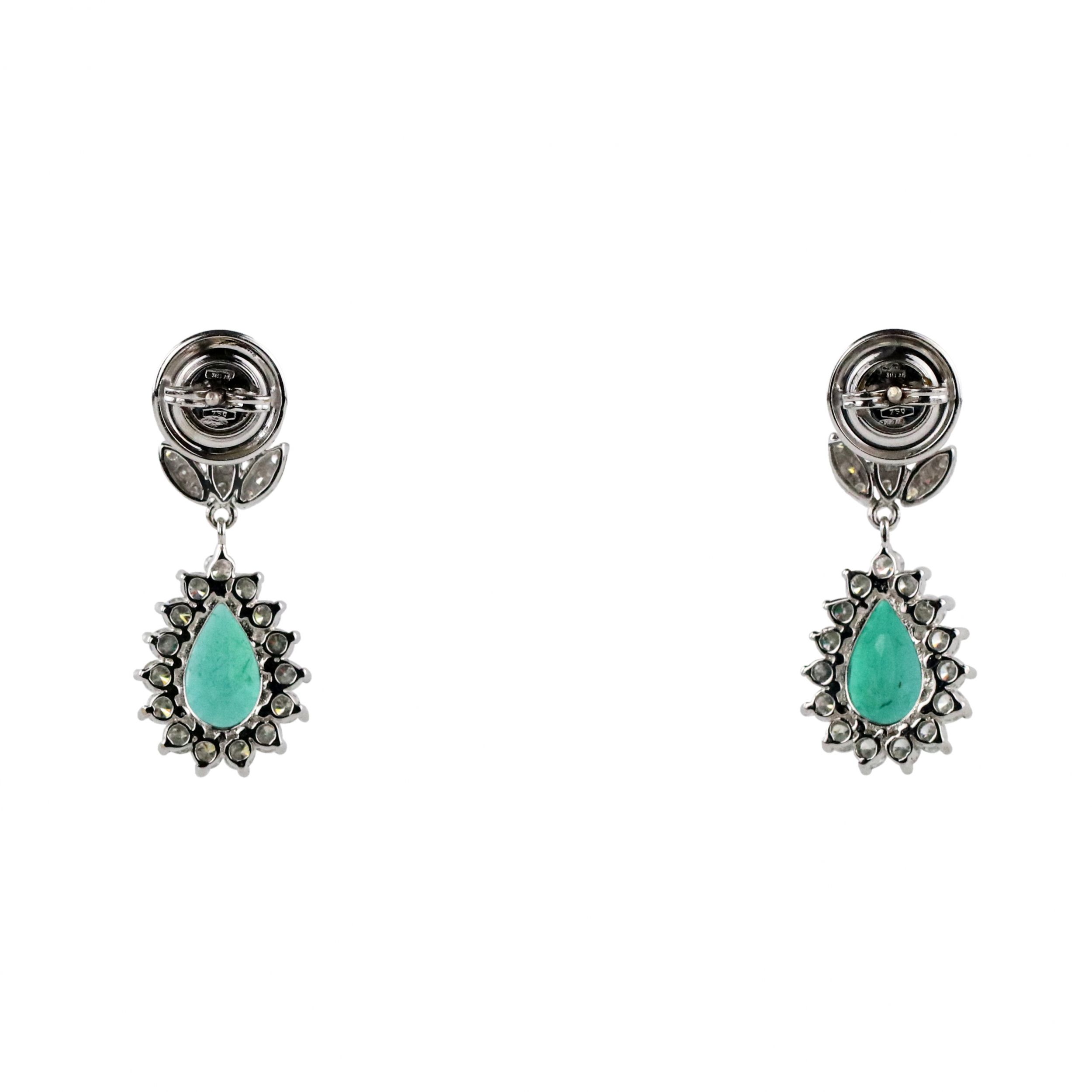 Выразительные, золотые серьги, классического дизайна, с изумрудами и бриллиантами. 18 карат белого золота. Изумруды: 4,62 карата. 66 бриллиантов 2,30 карат. HVS1. Общий вес: 9.68 гр. С сертификатом.