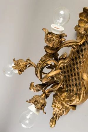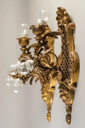 Пара больших настенных бра,выполненных в стиле Наполеона третьего (Napoleon III) из позолоченной бронзы,богато украшенные элементами художественного литья. 1880 -1890 гг.