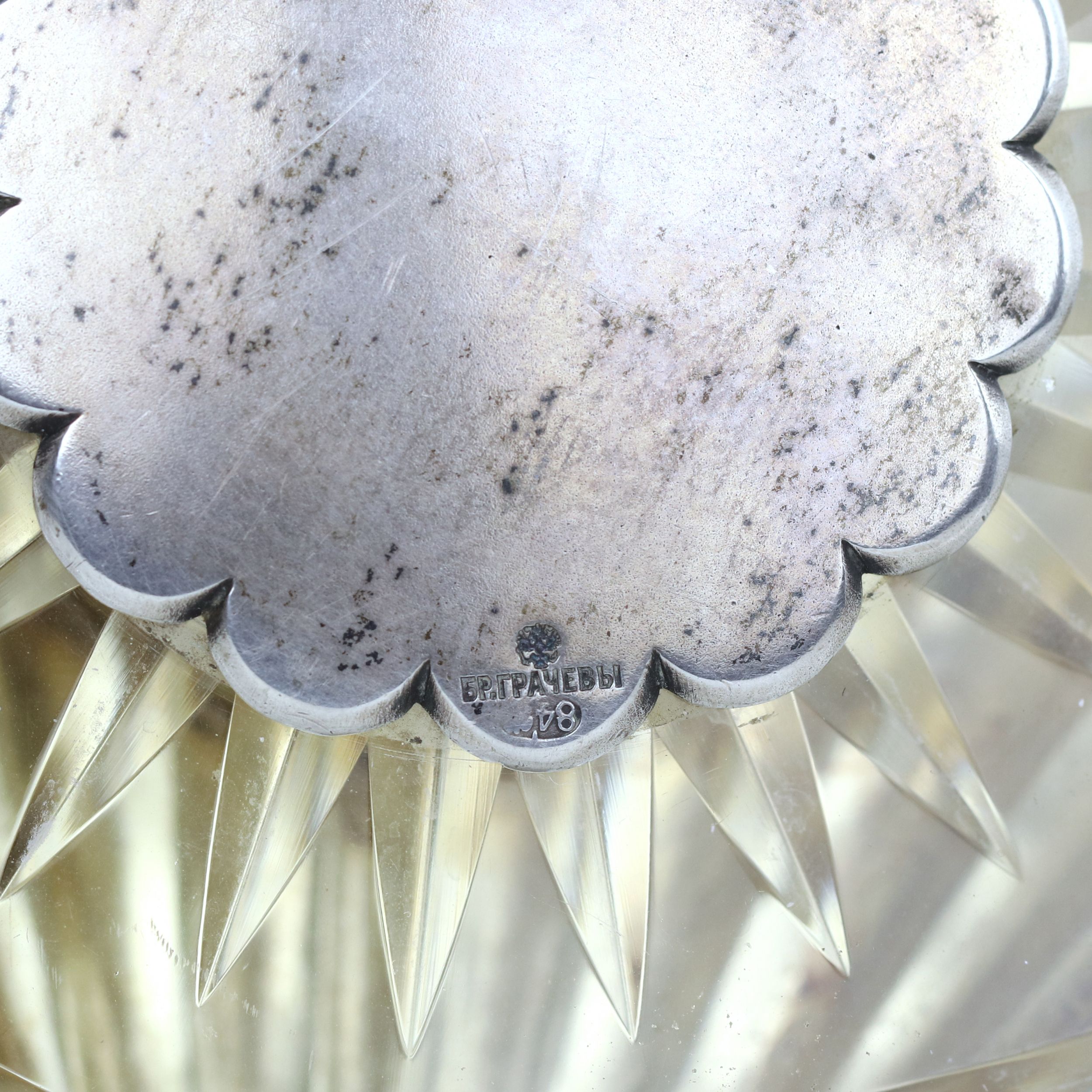 Превосходная пара ваз-тацци из хрусталя на серебряной ножке