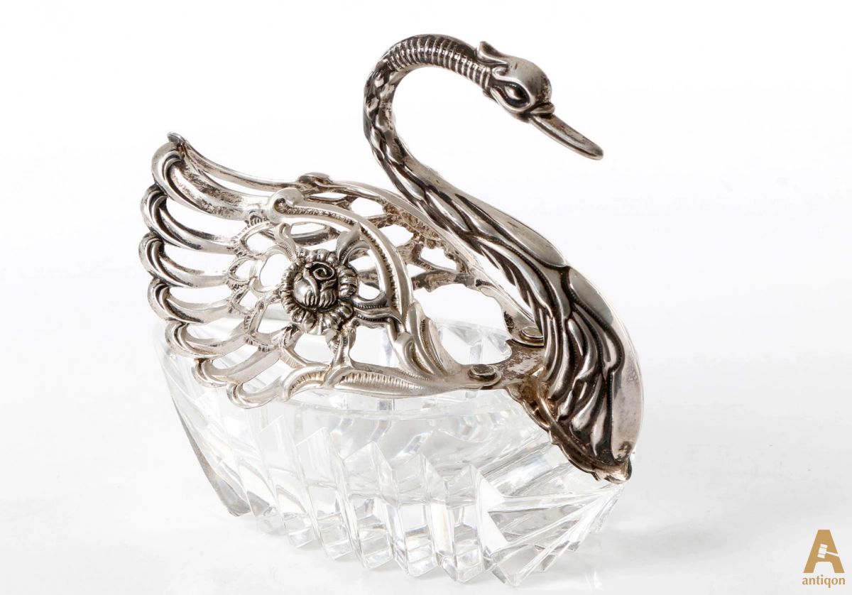 Бонбонье́рка "Лебедь" (фр. bonbonnière — «конфетница», от фр. bonbon — конфета). Серебро.