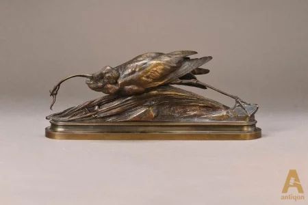 Бронзовая композиция "Ибис за охотой на лягушек" известного французского скульптора 19 века- Auguste Nicolas Cain (1822-1894).