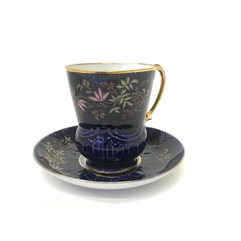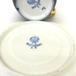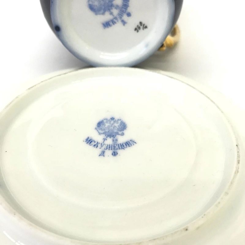 Чайная пара, выпущенная в начале ХХ века на Фабрике М.С. Кузнецова (бывший Фарфоровый завод Ф. Я. Гарднера) (Д. Ф.— Дмитровская фабрика)(1891 — 1917).