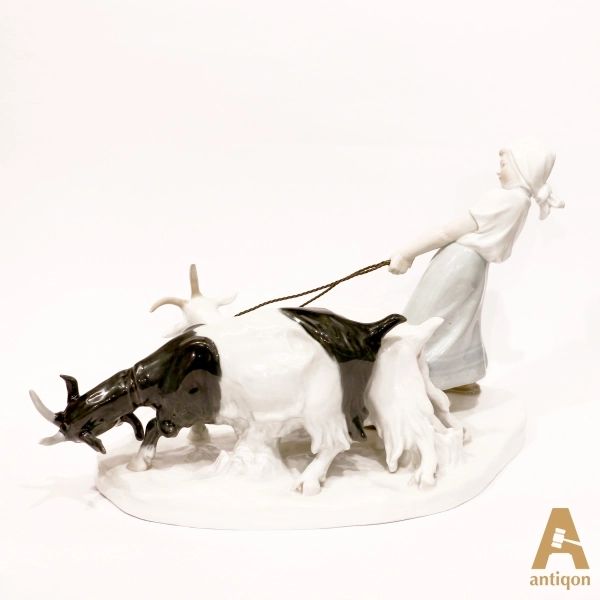Фарфоровая группа "Девочка с козликами". Клеймо производителя Meissen соответствующее периоду 1860 -1924 ,номер модели 200,100 ,Литеры.
