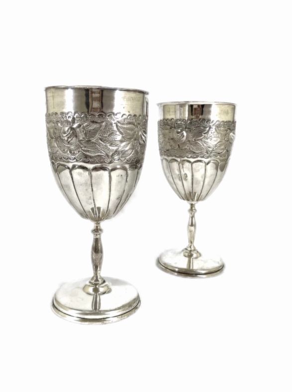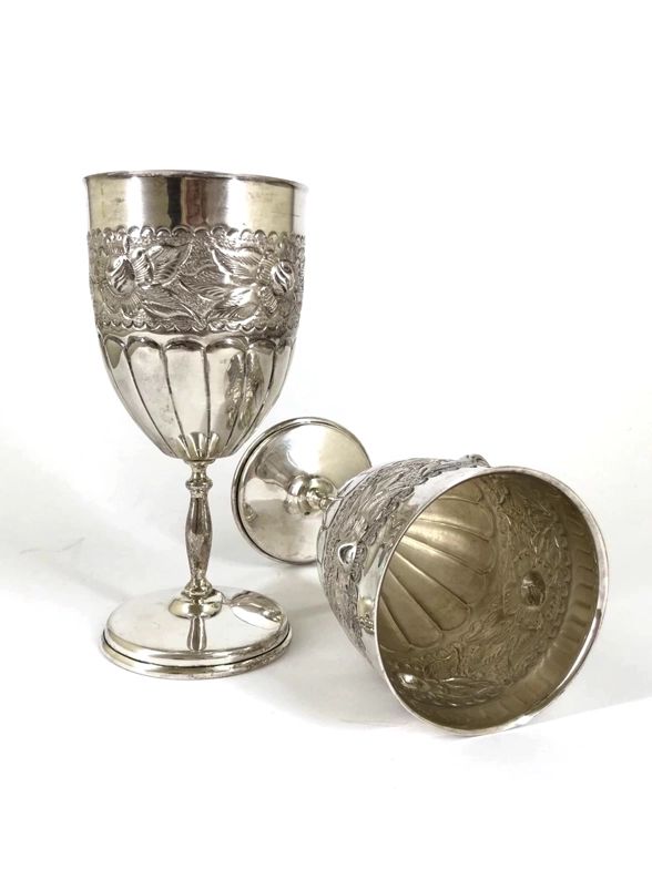 Два серебряных кубка,на тонкой ножке с массивным поясом цветов. Мексика.