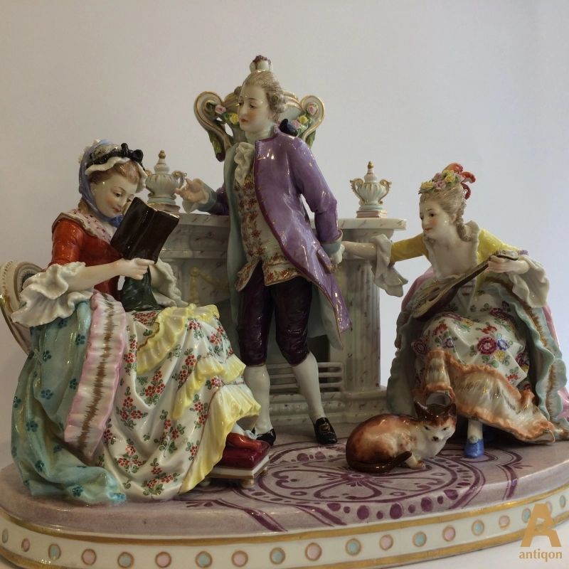 Фарфоровая группа в романтическом стиле с фрагментом интерьера.