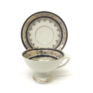 Кофейная пара украшена позолотой, изображением города Bad-Wildungen, Fürstliches Badehotel, надглазурный знак «W.C.G.»