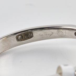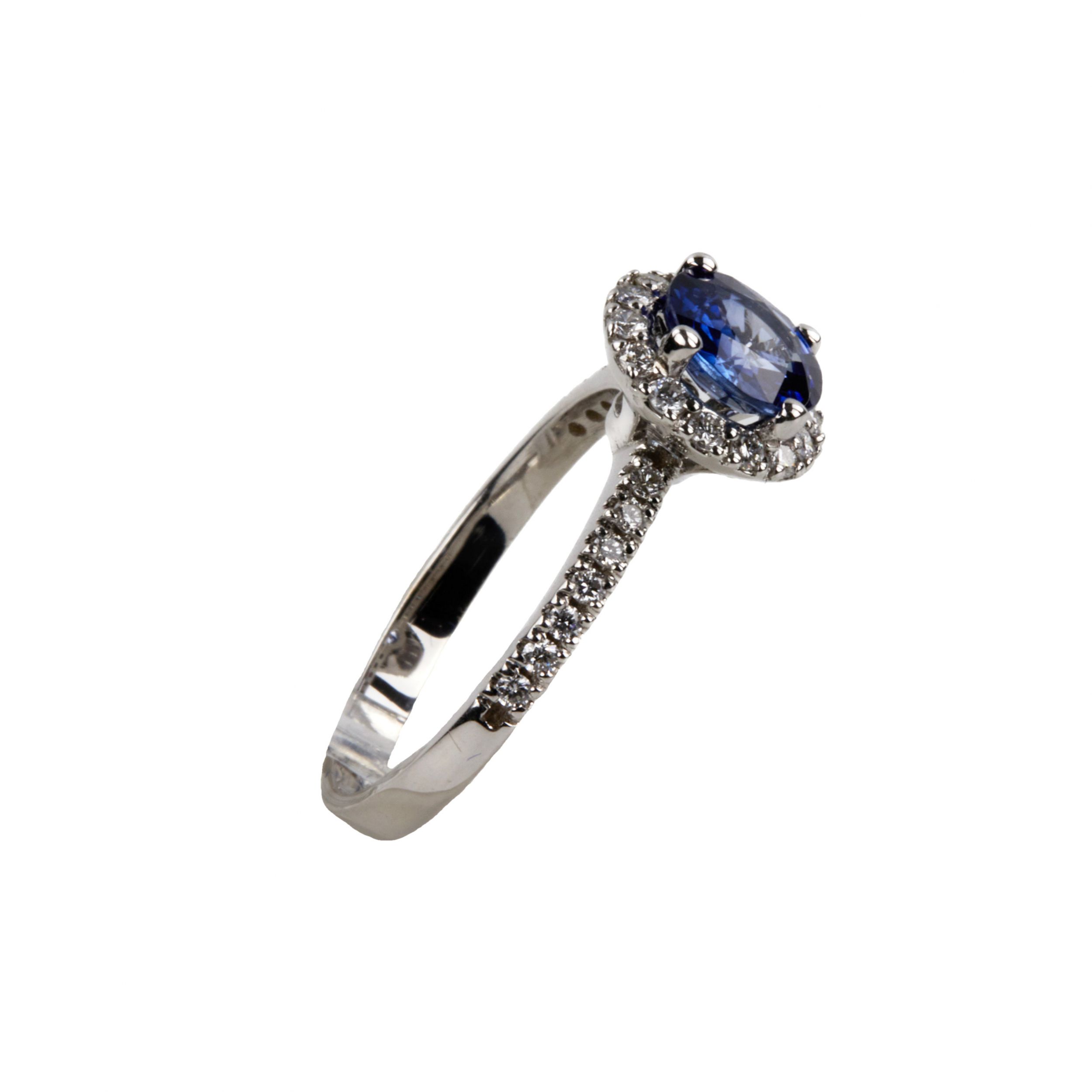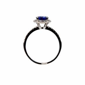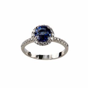 Кольцо белого золота с голубым сапфиром и бриллиантами.