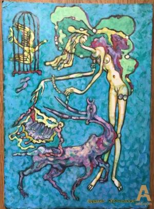 Предположительно автор: Сергей Иванович Калмыков — российский, затем советский казахстанский художник, иллюстратор, декоратор, писатель. Русский художник-авангардист, единственный из мастеров Серебряного века, доживший до конца шестидесятых годов.